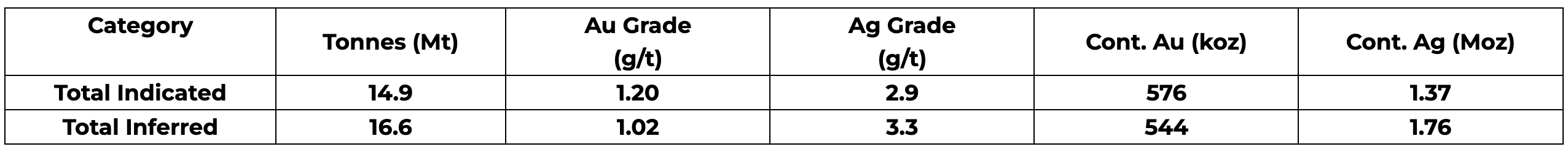 - Total Indicated: 14.9 Mt at 1.20 g/t Au; 576 koz Au