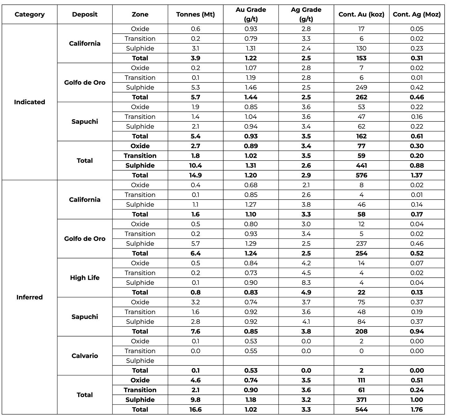 1. Rodrigo Calles, of Servicios Geológicos IMEx, S.C., William Lewis and Alan J San Martin, of Micon International Limited have reviewed and validated the mineral resource estimate for Sapuchi, Golfo de Oro, California, High Life and Calvario deposits. All are independent "Qualified Persons" (as defined in NI 43-101) responsible for auditing the 2022 mineral resource estimate. The effective date of the mineral resource estimate is June 22, 2022.